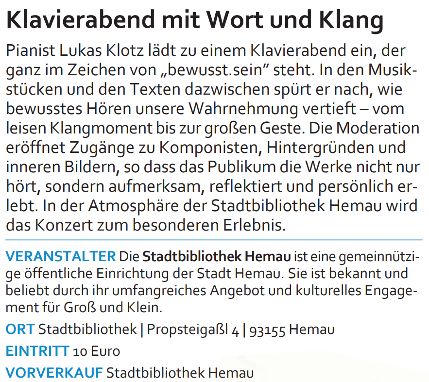 CD-Veröffentlichungen von Lukas Klotz mit Werken von Bach, Haydn, Beethoven, Brahms, Liszt, Schumann und Debussy, finden einhelliges Lob der Fachpresse.